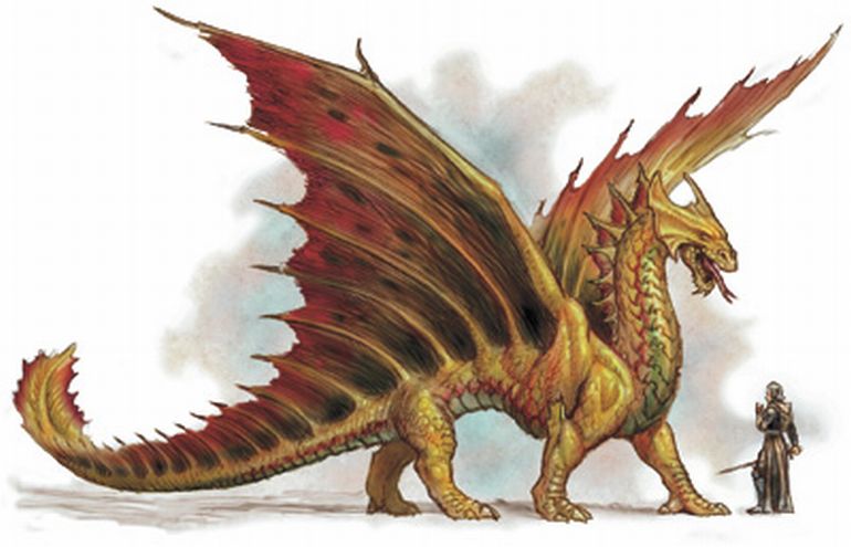 One of my favorite aspects of D&D, of course, were the dragons. I loved the idea of the chromatic dragons being evil and the metallic dragons being good, but more than that, I loved the varied designs. My favorite dragon from D&D has always been the Brass Dragon — the unique wings are so beautiful. I’m not copying the entire design for my dragons from this picture, but the wings certainly got their inspiration from here.