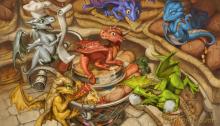 Happy Thanksgiving to all my American readers, and to everyone else, happy end of November! I found the perfect short series for this short week, so let me introduce you to these adorable little dragons by American professional artist Christina Yen, posting as The-SixthLeafClover. In this first panel we see the Little Gatherers shopping for ingredients as…